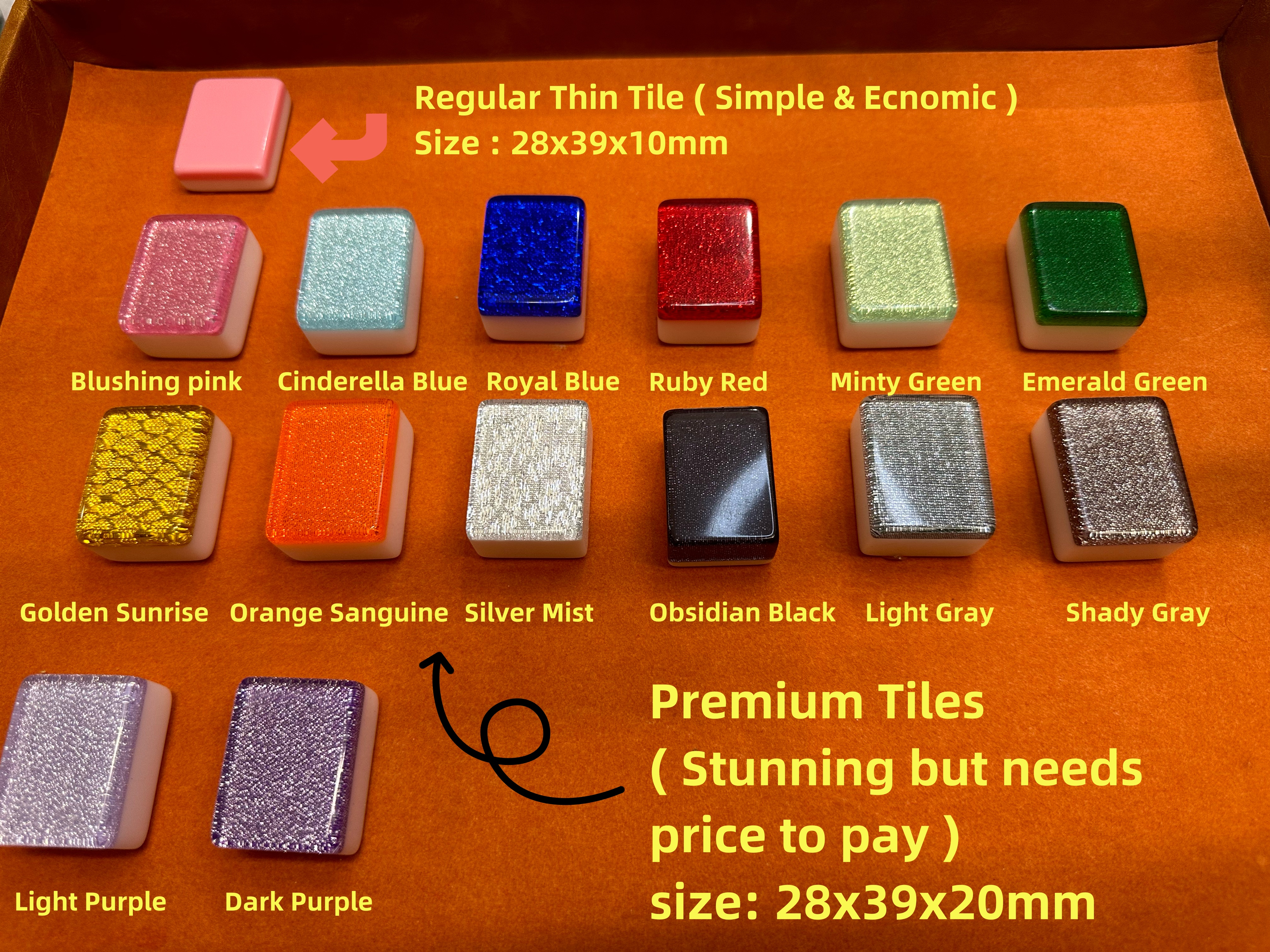 Tile Size (W*L*T) : Regular Thin Tile : 29*38*10mm